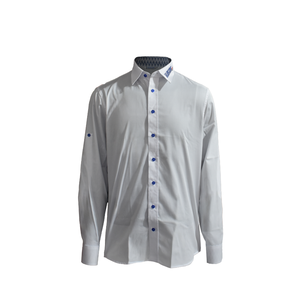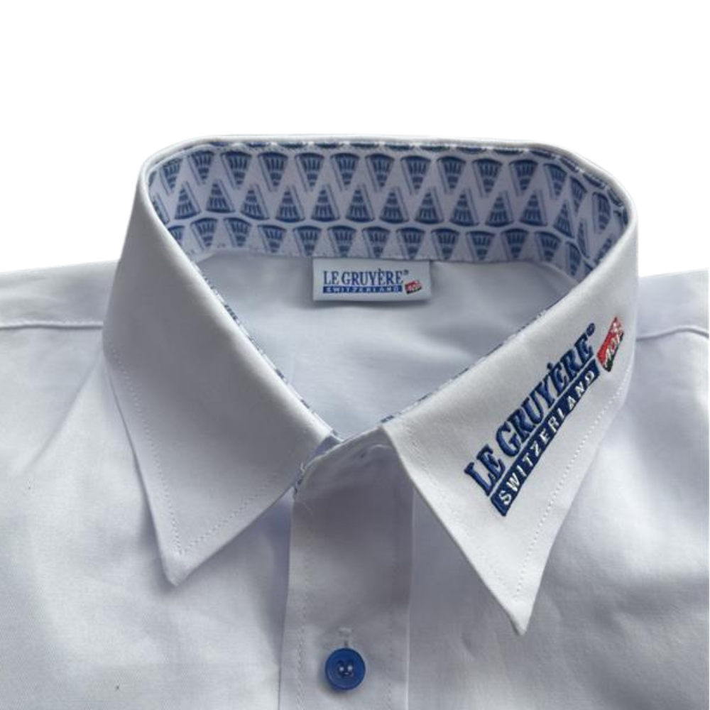 Chemise homme en coton et polyester, avec logo La Gruyère brodé dans le col