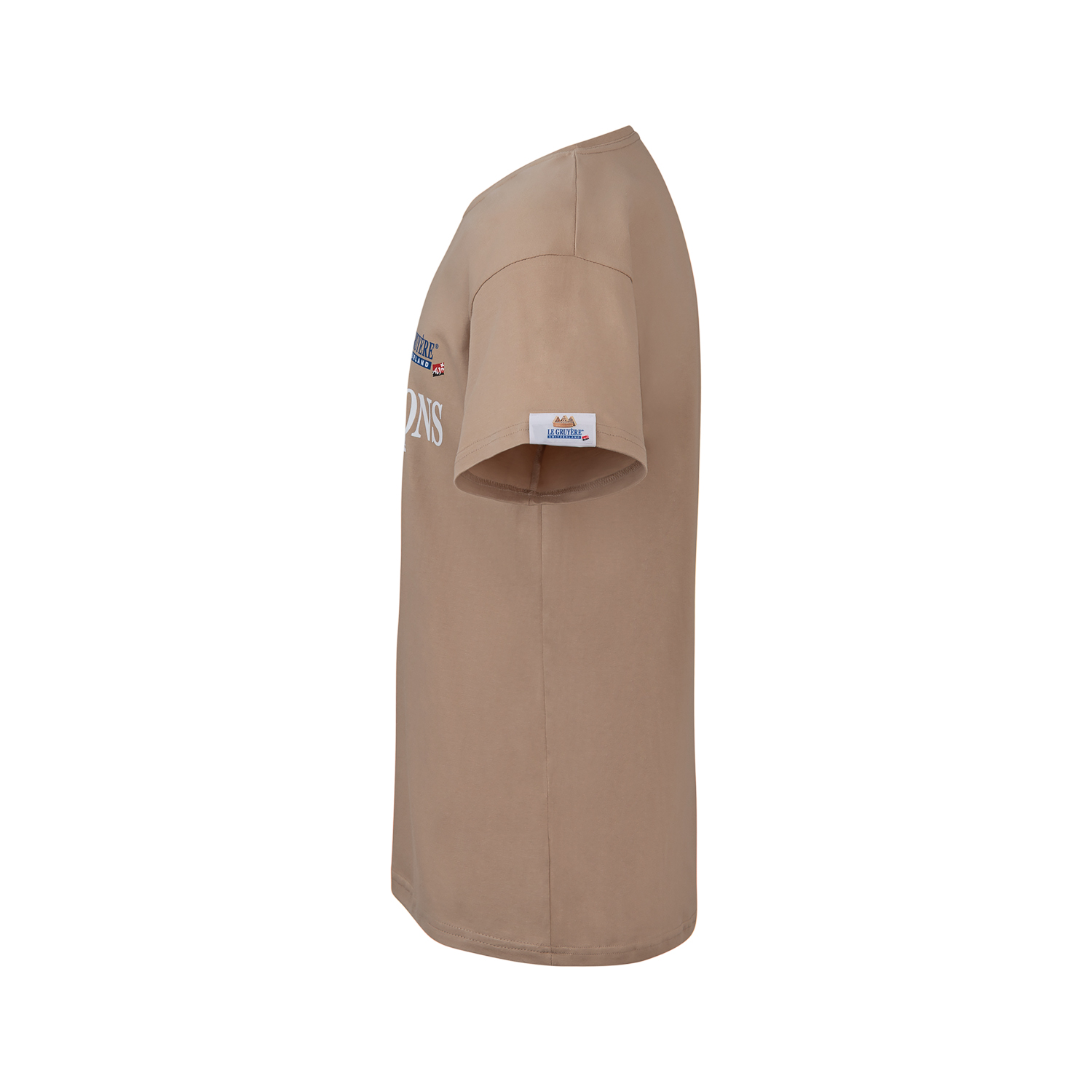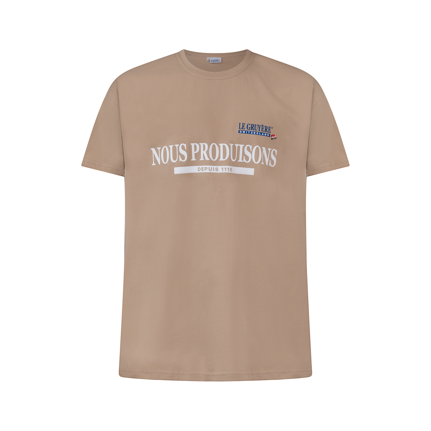 T-shirt en coton unisexe avec texte imprimé et logo Le Gruyère AOP, article fabriqué en Europe.